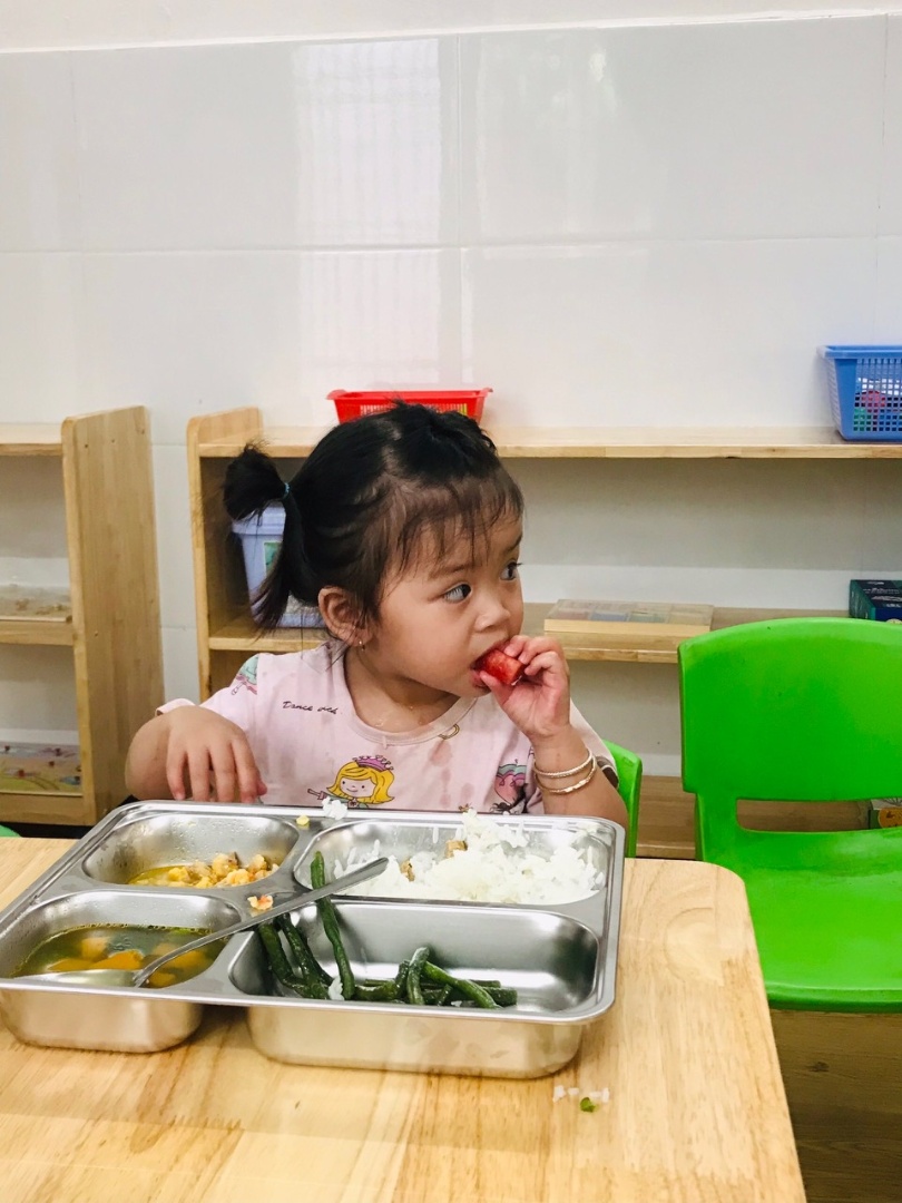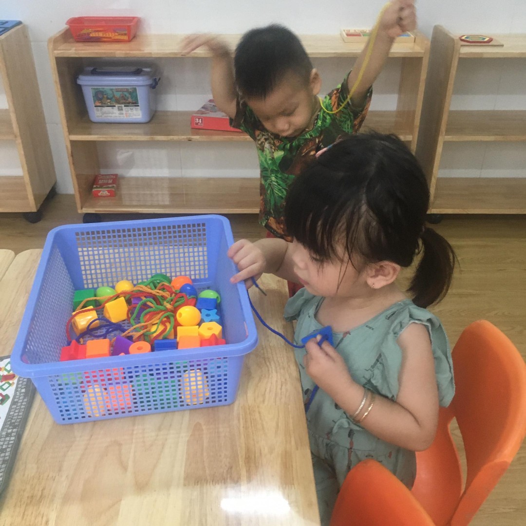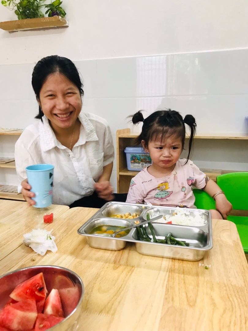 Trường dạy Montessori kết hợp dạy song ngữ và có giáo viên nước ngoài nên bé ở nhà rất thích