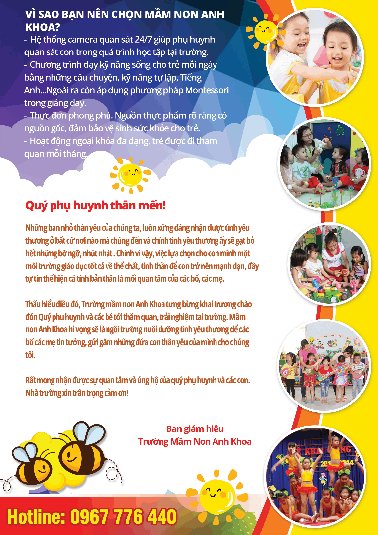 Mình rất thích cách trường làm việc, rất rõ ràng, không thu thêm học phí gì, chỉ 3 triệu cho toàn khoá học, các cô rất có tâm và mình thấy yên tâm khi gửi con tại đây
